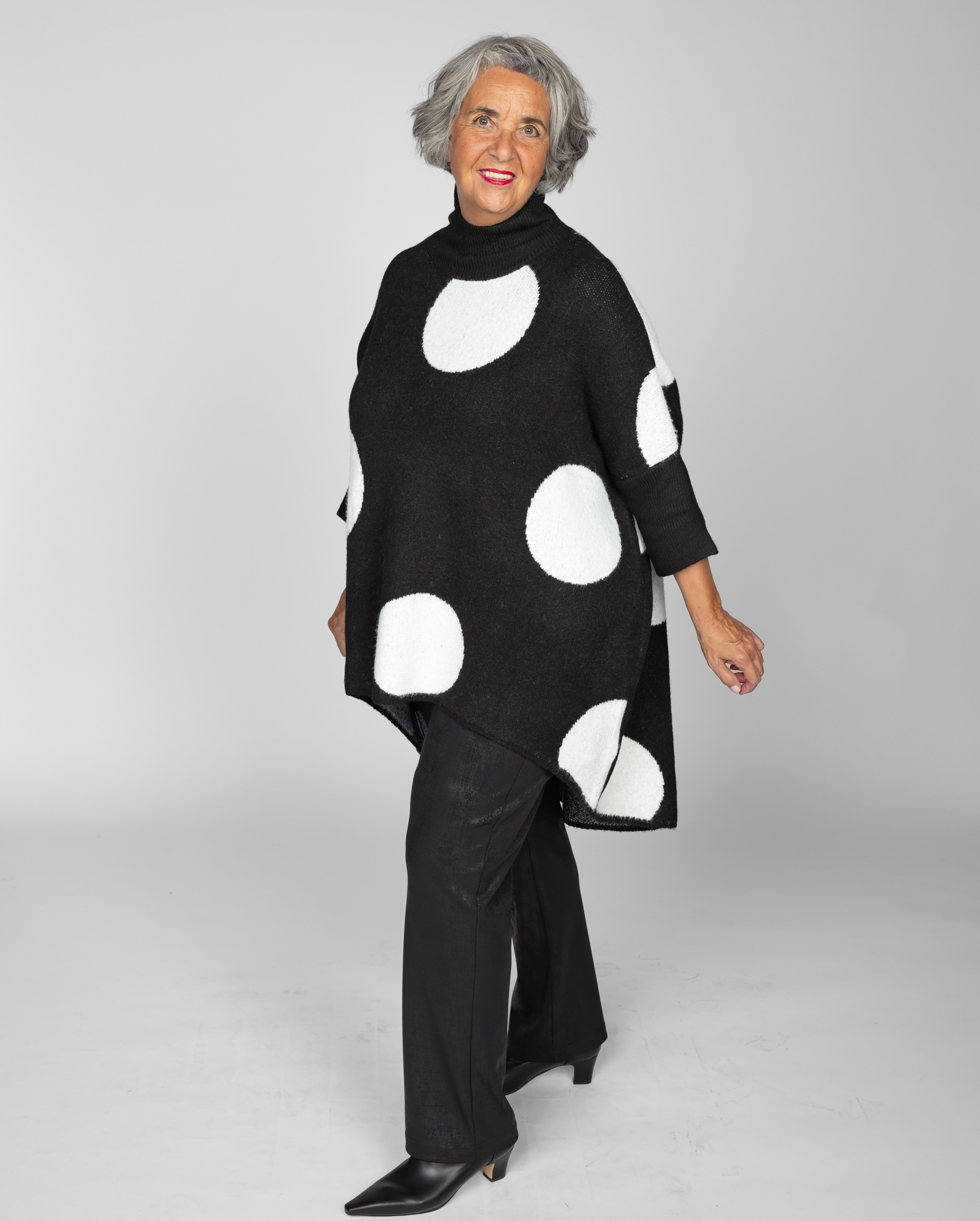 FUNSPORT – Pull “High-Low” à Pois à Col Montant et Manches Raglan (253A10)