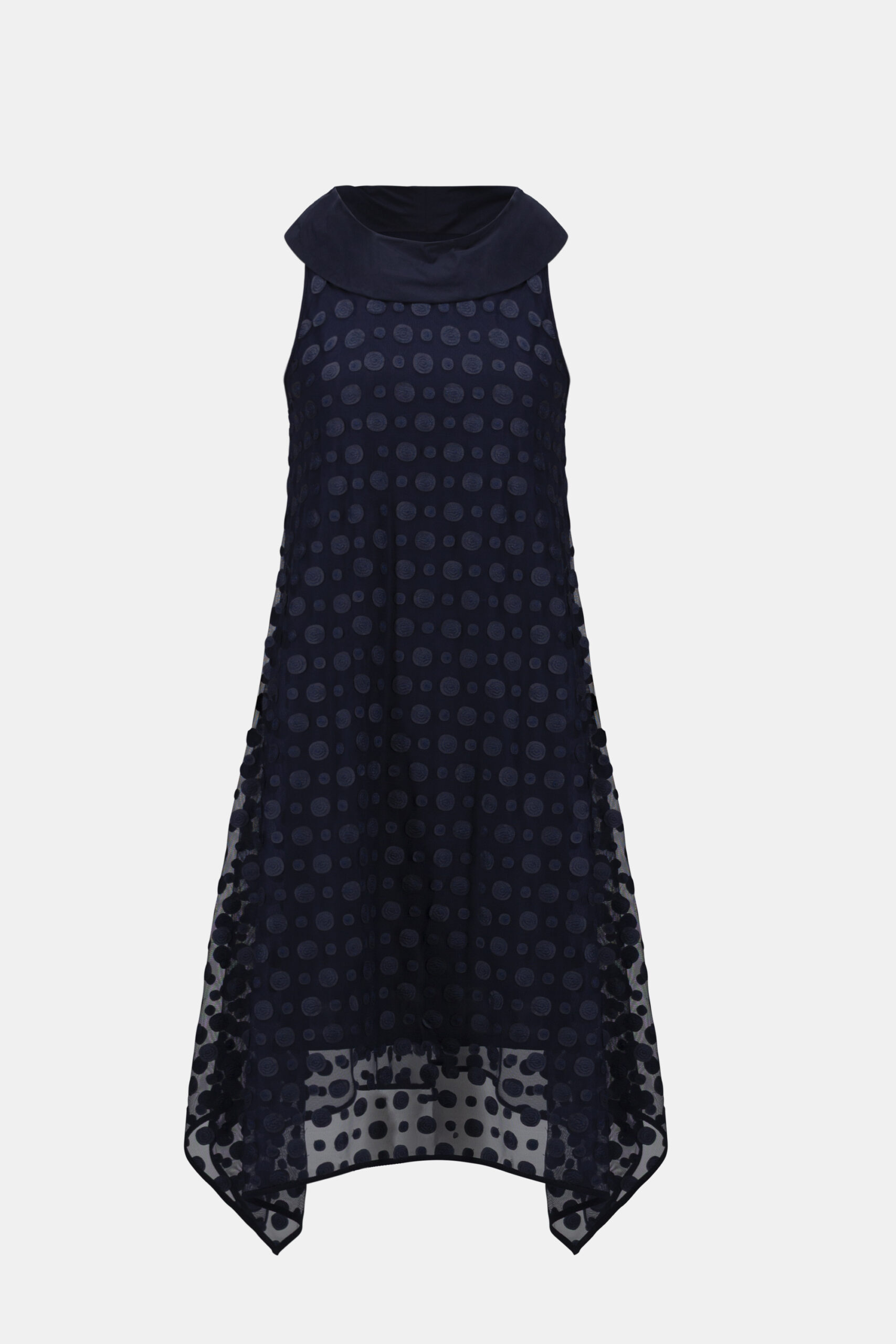 JOSEPH RIBKOFF – Dot Embroidered Mesh Handkerchief Dress With Cowl Collar (261299)